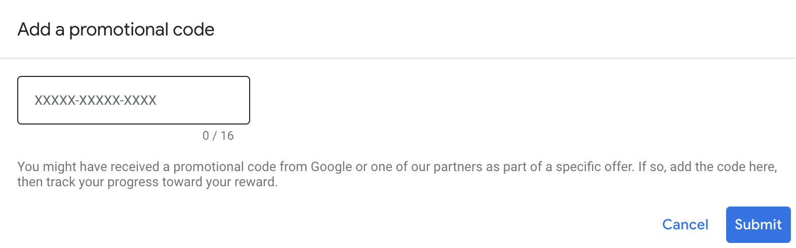 In your Google Ads account, click the Billing icon Billing Icon > Promotions.