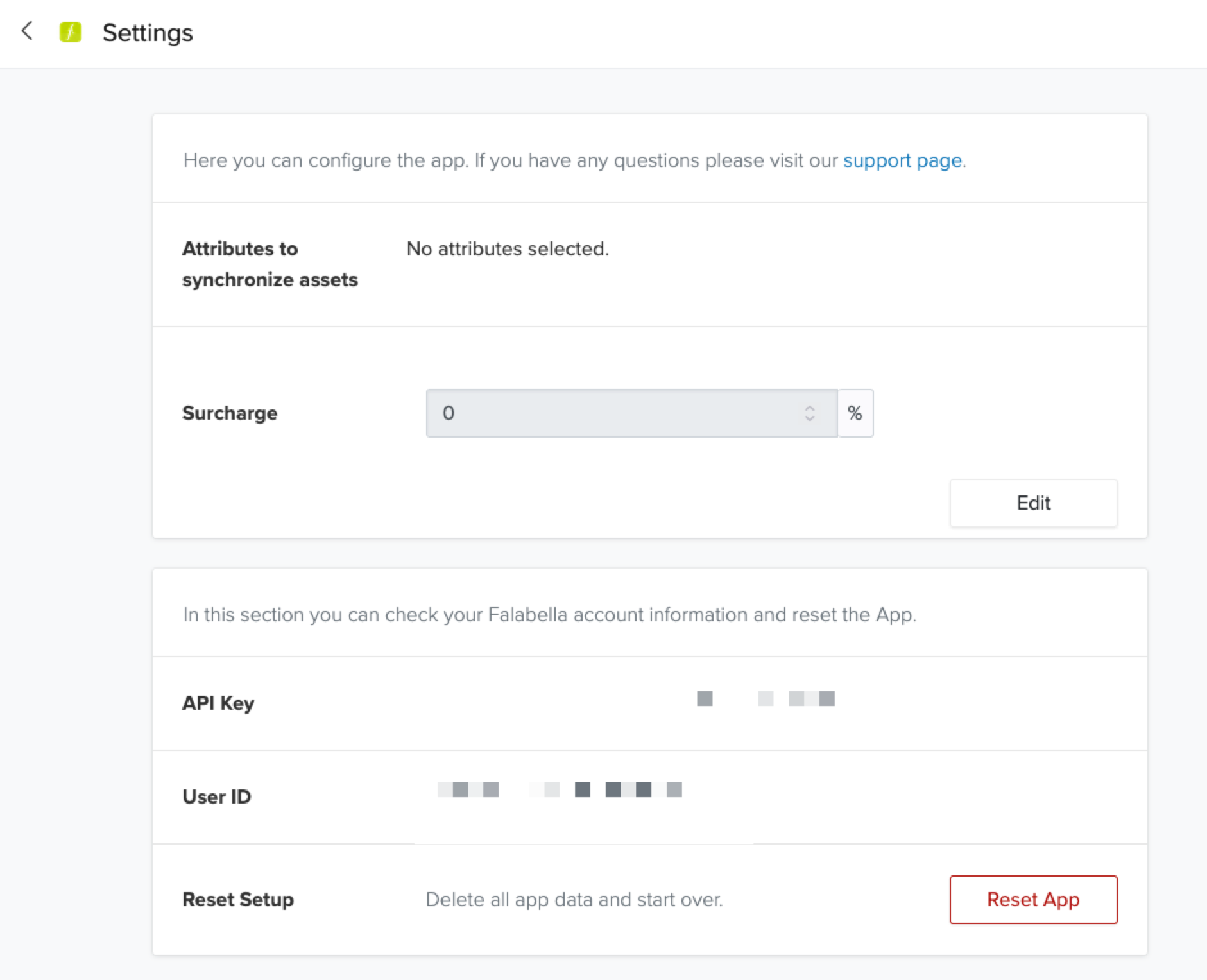 To sync your products, first install the Falabella Marketplace app from the Jumpseller App Gallery. Then, configure your API Key and User ID and follow the setup instructions. Once configured, the app will automatically sync products if the SKUs match.