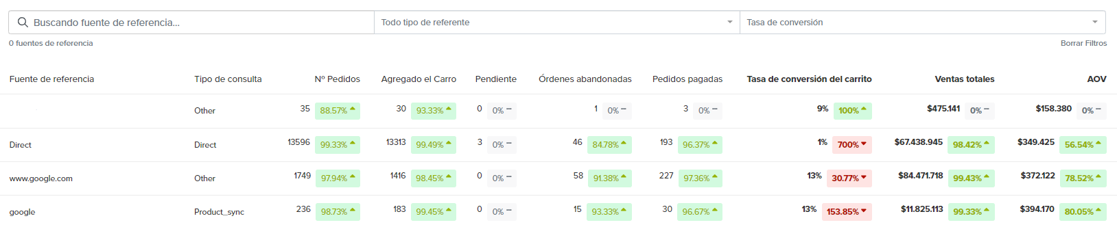 Look for trends or patterns in the data over multiple periods to understand changes in performance from different traffic sources.